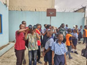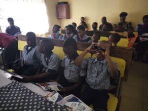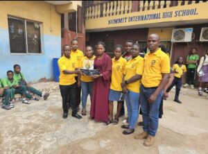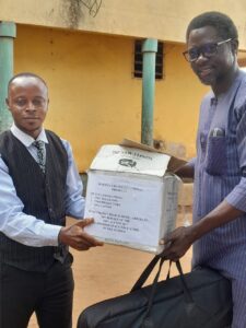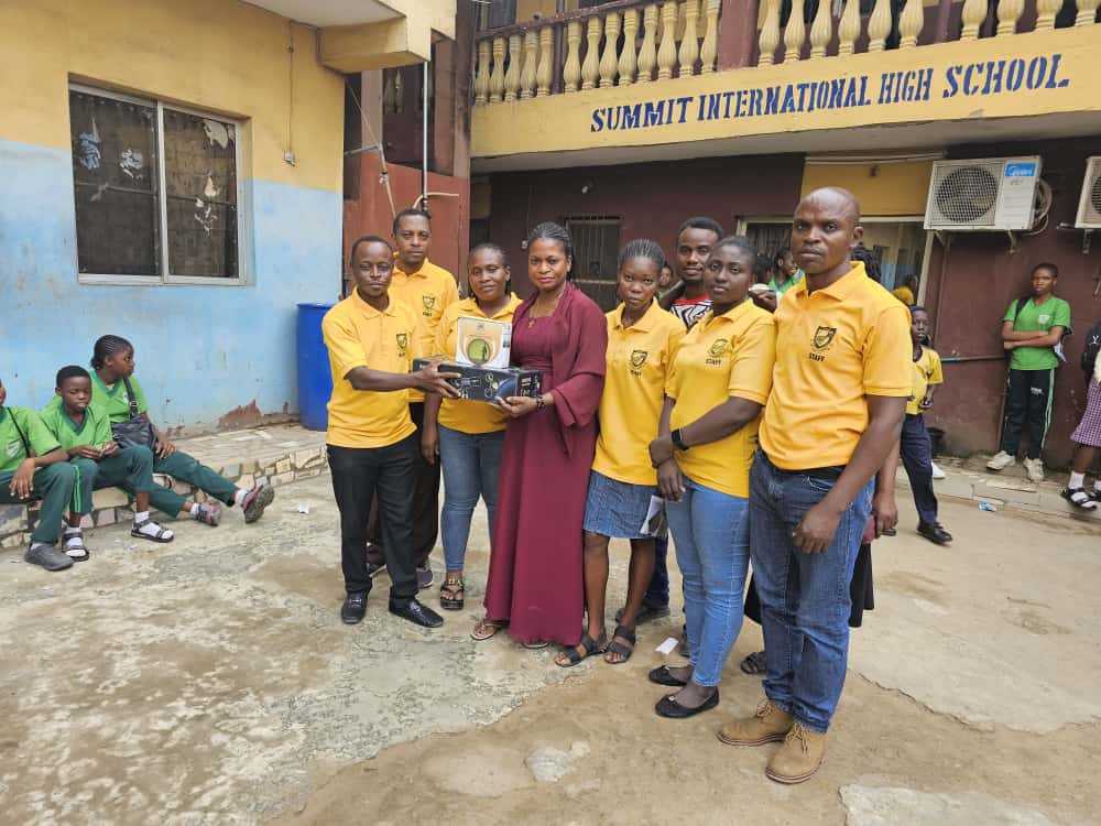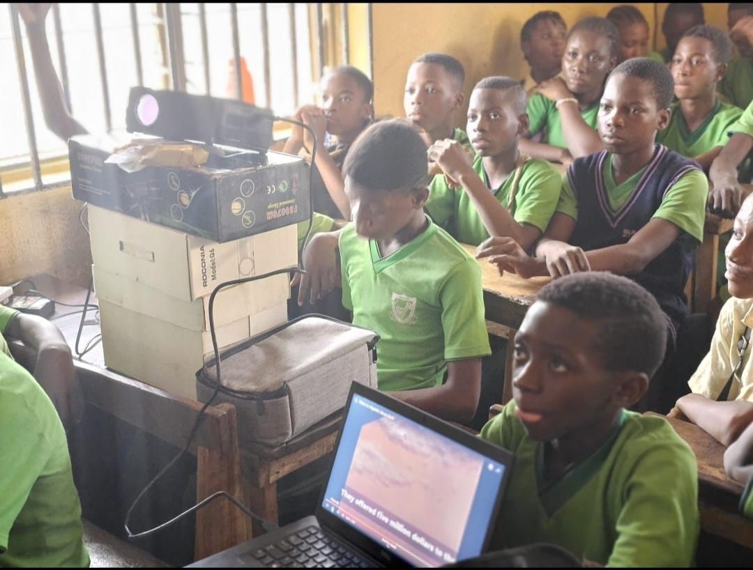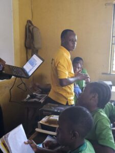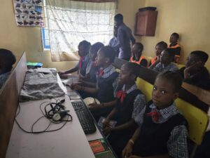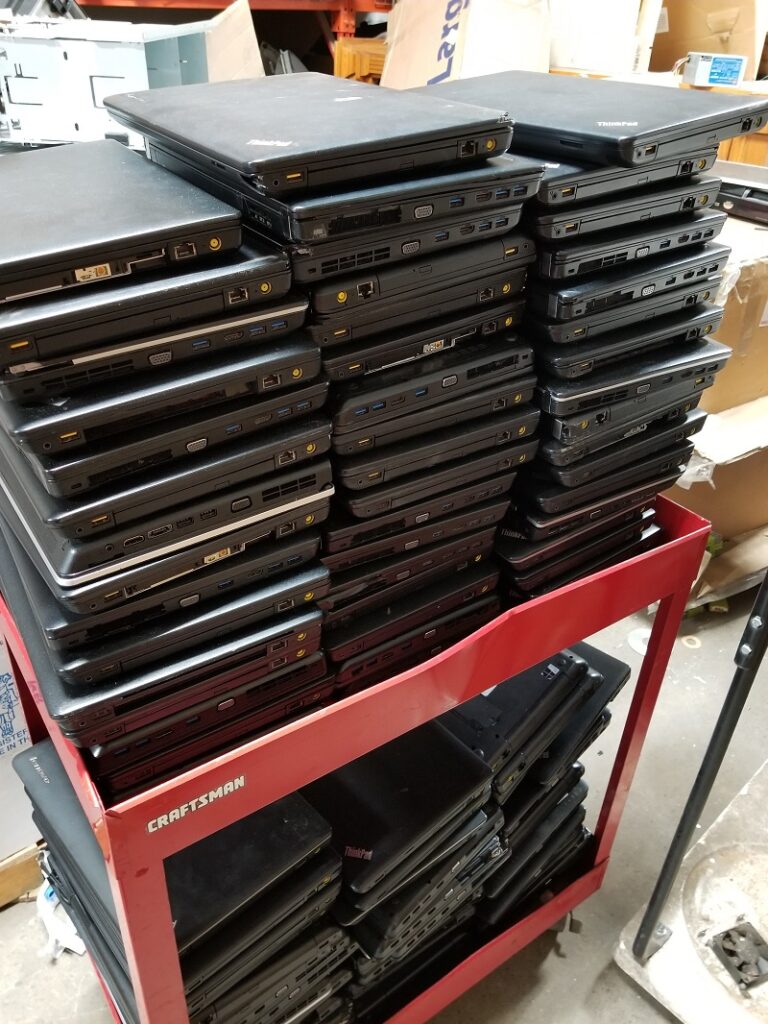 One of several hundred mini laptops purchased and refurbished to be shipped to the schools. Some are given away free to really needy schools. In other cases, the schools only have to provide the cost of shipments. More well to do schools provide the entire cost of procurement and shipping.